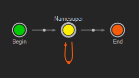 The Template itself is represented by a Present State. In the Logic View of the animation, click on the state that represents the name super fully on-screen and press P. The State Type switches to Presented Default and the icon turns yellow. You now have a Begin State, a Present State and an End State, with green, yellow and orange colors respectively.