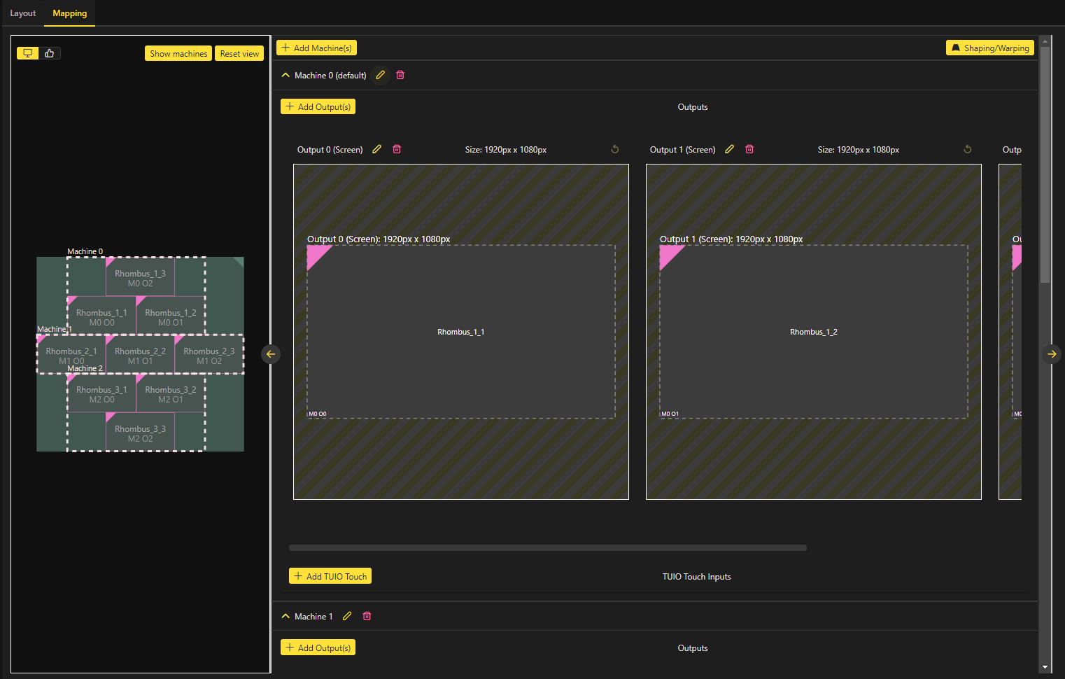 This Wizard has now created 3 Machines. Each Machine has an ID from 0 to 2. Each Screen from the Layout Setup has been assigned to an Output on each Machine.
