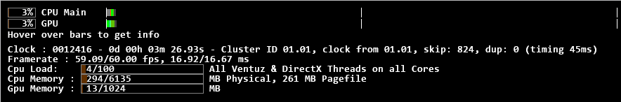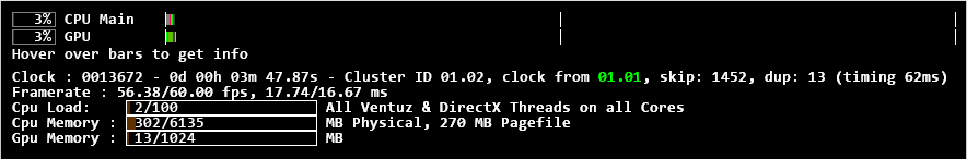 There is one unique feature for Nvidia in synchronized cluster setups. When using a Nvidia framelock setup with enabled Swap Sync, it is possible to get the timing for the Cluster Clock from the synchronization board. As this is not based on a network protocol, this is method is more precise. In this case the digits that represent the clock master in the statistics show FL (Framelock). Read more about synchronizing a cluster below.