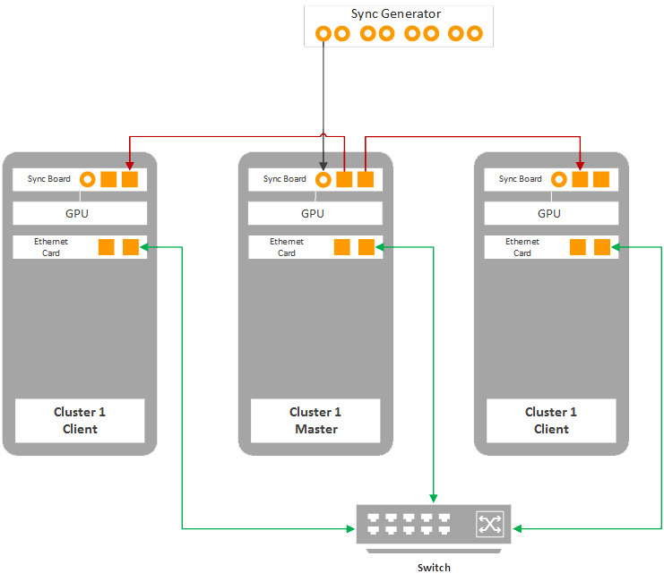 In a cluster environment synchronizing the outputs needs to be considered, especially in the case of video playback, having any frames of delay between outputs may be produce undesirable results. For those scenarios, additional hardware is required - sync boards can be used. Popular examples are the AMD FirePro S400 Synchronization Board and the NVIDIA Quadro G-Sync Boards. Some information about different synchronization scenarios can be found on the Cluster page.