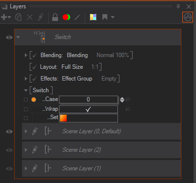 In Ventuz, create a new scene. Add a Layer Switch and add a Scene Layer to each output of the Switch. Set each Scene Port to a different scene you want to show. This will be the Ventuz functionality we want to remote control.
