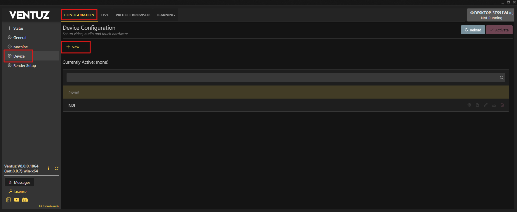 To use Stream Out we need to create a Device Configuration for it. Head to the configuration tab inside the launcher or configuration editor and create a new device configuration.