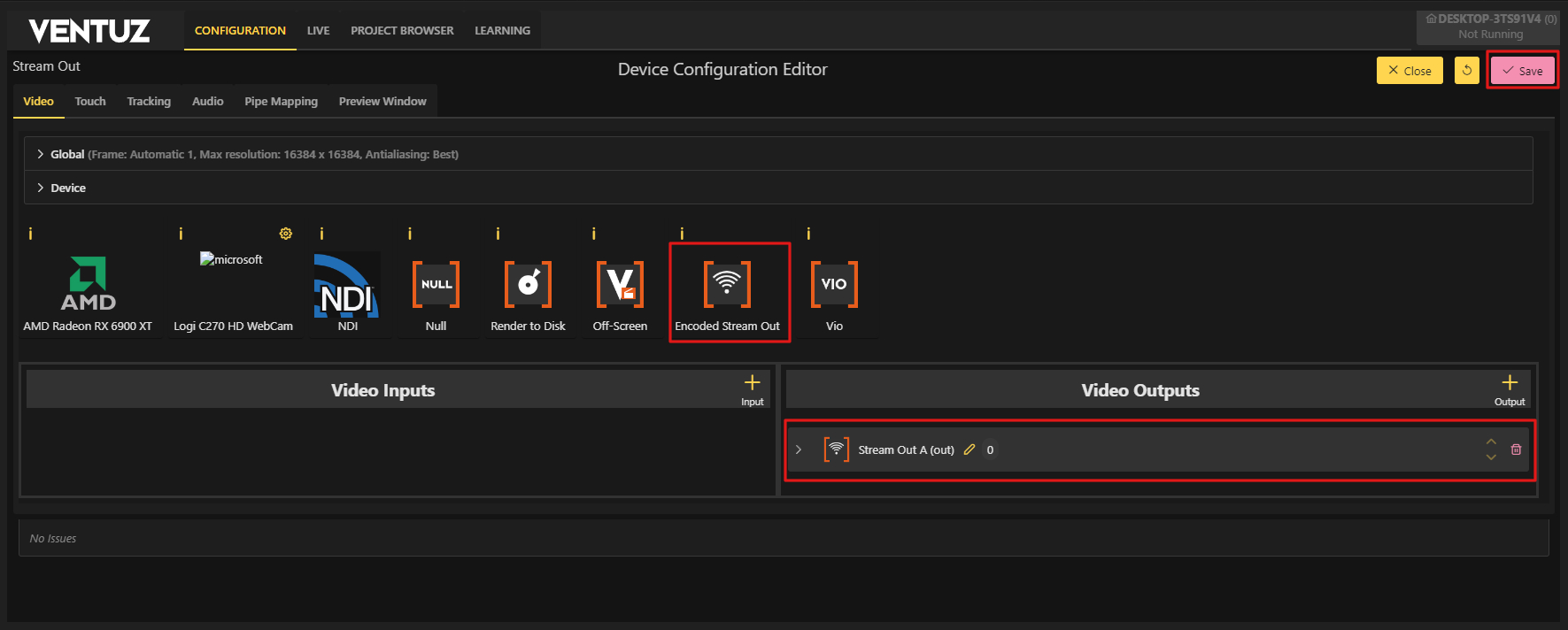 Previously when using this mode, the stream is not sent anywhere by default. These settings are usually needed to enable your own custom program with your own tools to catch or use this stream via our Ventuz Stream Out API.
