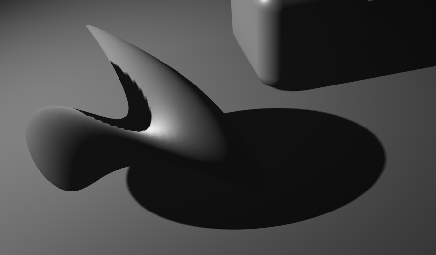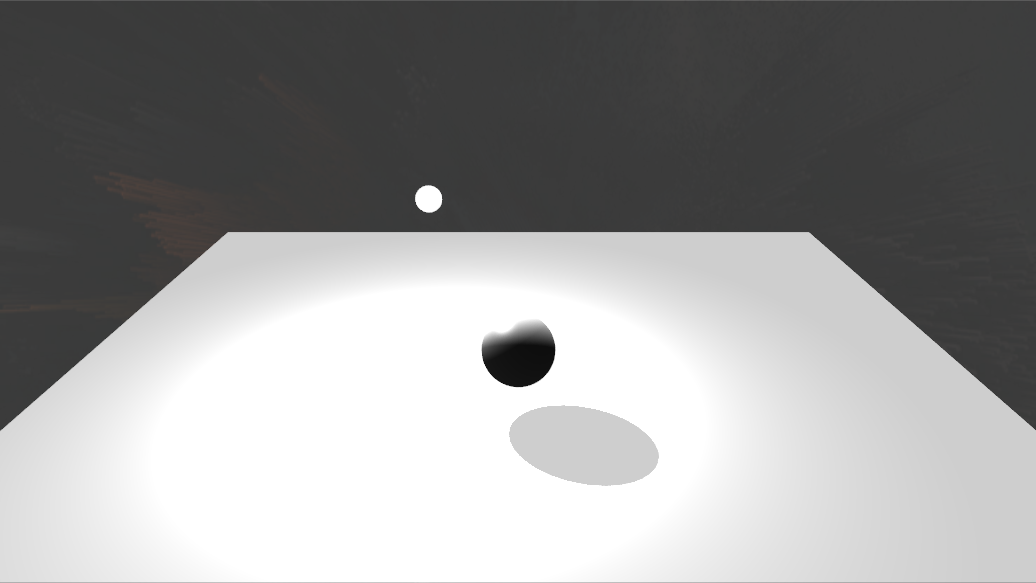 The FadeDiffuse, FadeSpecular and FadeAmbient affect how much each channel of the Material fades out the Material. By default, all of these are set to 1. If one of these is turned down, the shadow is not affected anymore if the channel is affected other than through the shadowing light. In the screenshots below you can see a Sphere that is casting a shadow onto a rectangle that was cast by the spotlight above it. The Rectangle is also lighted by a Directional Light which is affecting the Rectangle's Diffuse Channel. On the left you see that scene with a FadeDiffuse value of 1 and on the right you see the same scene with a FadeDiffuse of 0. As you can see, the shadow is not as intense on the left as on the right, because it is affected by the Diffuse Channel of the Rectangle.
