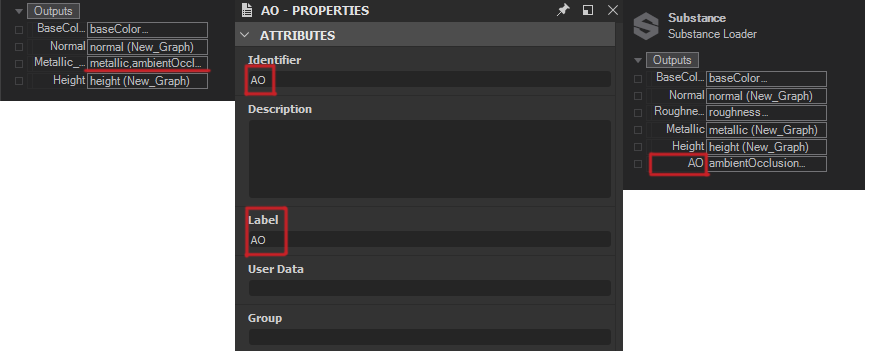 Another thing to note is the semantics of your outputs: The Substance Material node will map the textures to Material Channels based on the Usage property of an output in the Substance Designer. This does not happen in the Substance Loader Node, there all pre-defined Outputs are named like the Outputs you defined in Substance Designer.