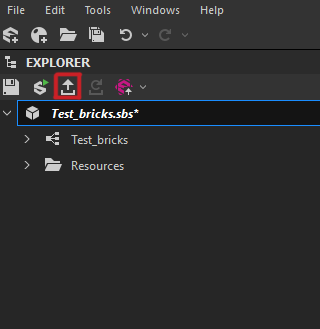 To be able to use it in Ventuz we need a .sbsar file. To create that file you need to  click the Export button inside Substance Designer. This will save your Substance Graph as an .sbsar file. We can then use it inside Ventuz to continue working with it.