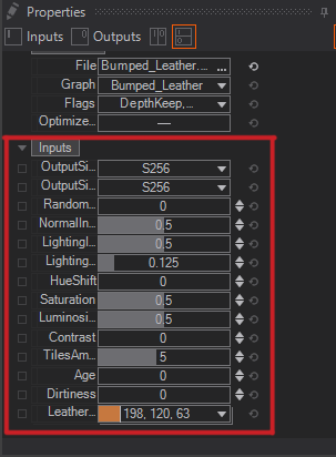 The parameters you exposed during the Preparations are visible in the input of the Substance nodes. Changing these will cause the texture to be newly generated.