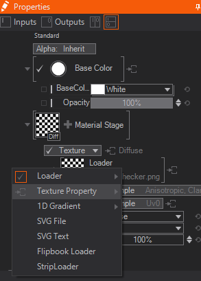 Now  click on Loader and  double click the Texture property's thumbnail.