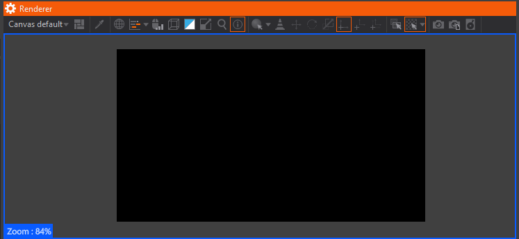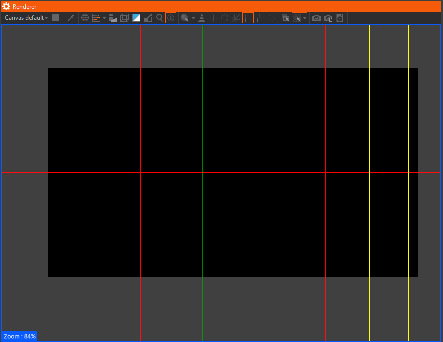 When Ventuz is in ISE Mode, blue border will appear around the Renderer View. By default, the Zoom will be set to 84% - as shown below: