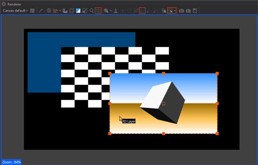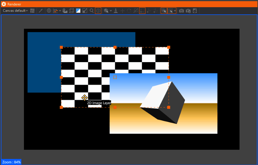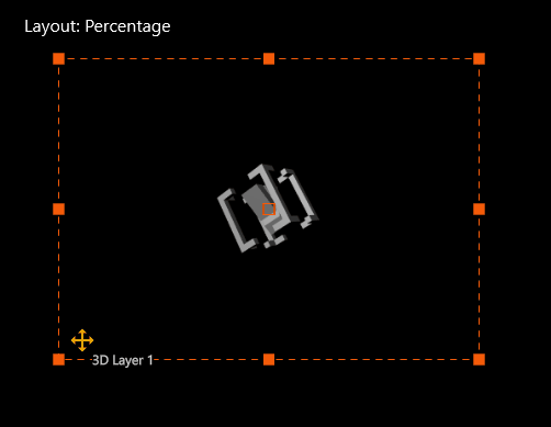 While ISE Mode is active, the selected layer will be indicated with an orange dotted frame. Handles will be available to modify its Scale and or Position. Click & drag any of the handles to modify the scale of the selected layer. Per default, the scaling will happen in percentage. To change this, need to select a different Layout in the Layout Properties.