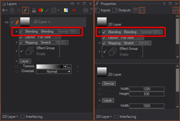 The Ventuz Designer has a wide range of different blending modes. You can find the blending modes for each layer in either the Layer Editor or the Property Editor.