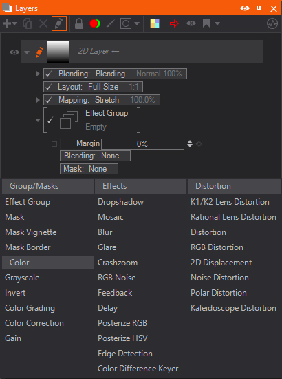 Now you can click the small + to add an effect to the selected layer.