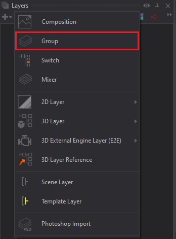 The Group Layer is a helpful tool when trying to keep things organized. This Layer type can be found at the very top of the list when adding a new Layer.
