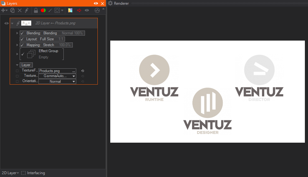 • 2D Layers are the quickest way to integrate images and movies into Ventuz using the 2D Compositing engine.