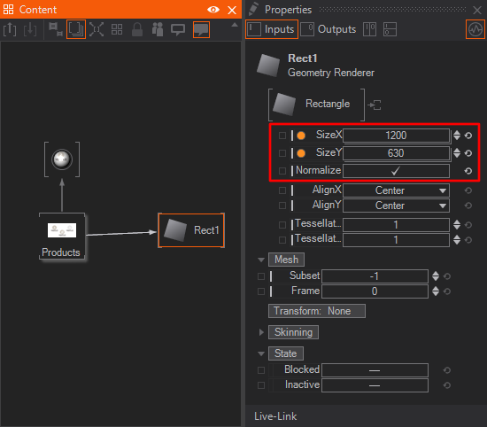In many cases it might be enough to only adjust a visual's transformation in 3D space, however you may want to have access to more advanced features like real-time lighting. This is where the Material Node comes into play. This enables you to apply your visual to any geometry and blend it in every way the render engine supports.