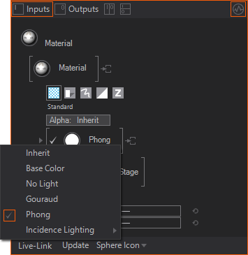 Finally, with the Material Node in Place you can enable or disable lighting by changing the Lighting Mode property group to Phong.