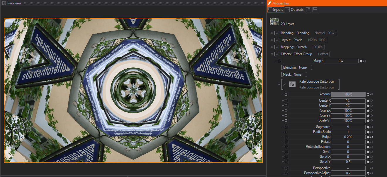 This distortion effect combines many of the distortion effect parameters, including some Barrel, Tilting, Polar/ radial deformations, etc. You can use it as your main deformation effect, unless you need some of the options available in more specific Deformation effects. The parameters available are: