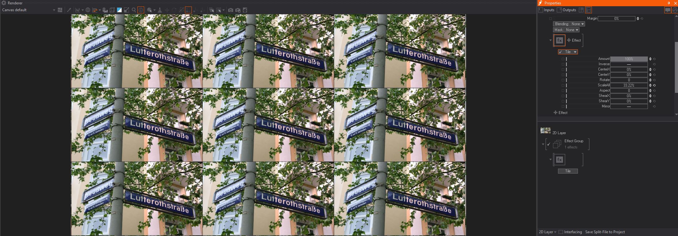 This effect allows for tiling the rendering, making it repeat itself. By using the following parameters: