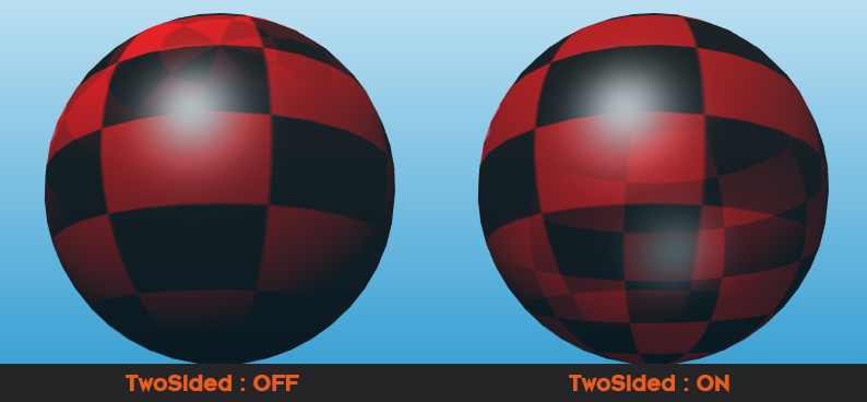 The SimpleCasterShader flag (enabled by default) enables a simple shader code. While the SimpleCasterShader is enabled, the object will be processed without taking the alpha and Vertex- and Perlin Noise into account. For example: If you have a Sphere and apply a Vertex Noise to the sphere, you will see a simple sphere without the vertex deformations. This is an important optimization, because it prevents constant shader switching when rendering shadows. See the Pictures below: