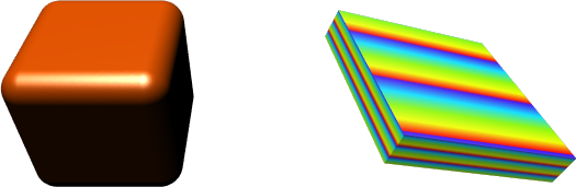 Depending on the actual size of the object in the renderer, it might be necessary to increase the tessellation values Bevel, X, Y and Z to preserve a truly round appearance in the bevel regions. As always, using more triangles often improves rendering or shading quality but decreases rendering performance.