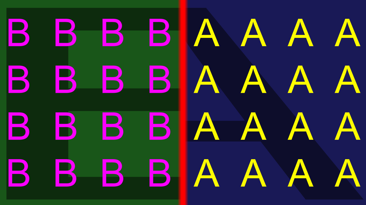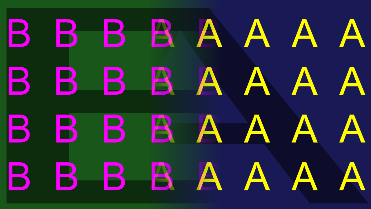 This allows to transition from A to a dip-color, and from that to B.