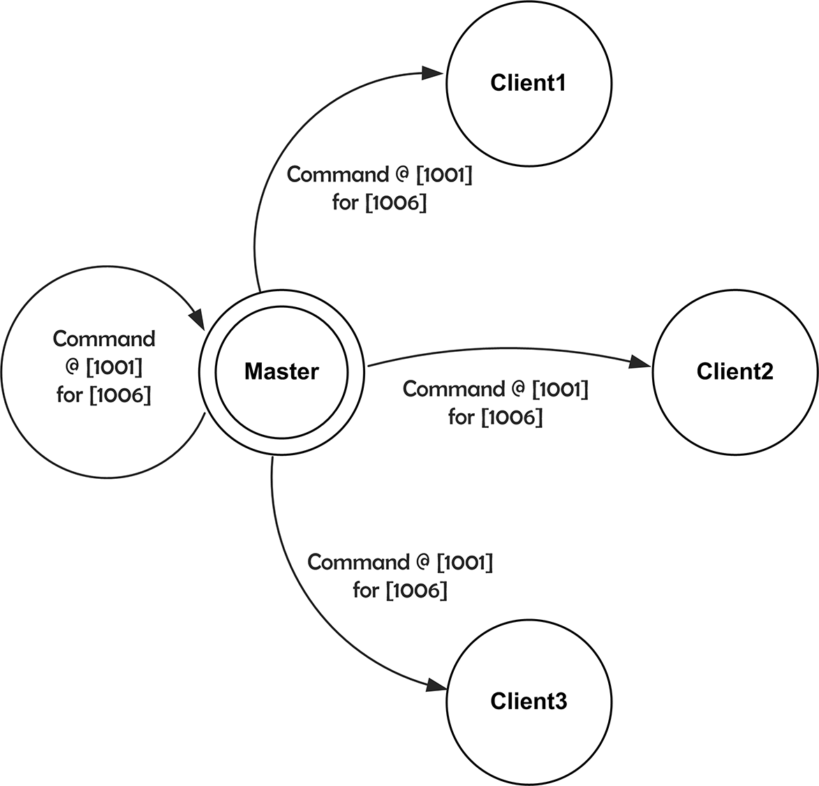 The Master just commands values and events and the clients have to apply them in the specified frame. In the example above the master sends values in frame 1001. Due to the Delay of 5 frames the values have to be applied in frame 1006.