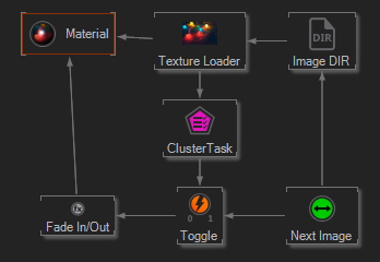 A good example for the necessity of the Cluster Task is the asynchronous loading and presenting of images on a video-wall driven by a Ventuz Cluster. To load images without stalling the rendering you have to use the Texture Loader in Async mode. But the load duration for the same image on different machines will always be slightly different and the image would be most likely presented in different frames per machines. To prevent this asynchronous image presentation one can use the Cluster Task node to synchronize the Loaded event of the Texture Loader node: only when all machines have successfully loaded the image it should be presented in a specific frame.