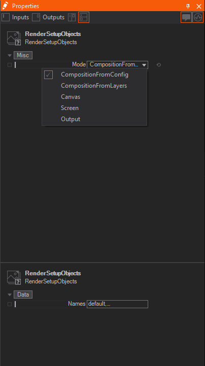 The Render Setup Objects node can provide a list of different elements depending on the mode chosen.