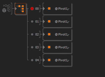 Much like Outputs in a Hierarchy Container, the Slide Manager uses Pivot nodes as connections between the nodes inside of it and the Slides. A pivot represents a location and orientation in the scene where a slide can be shown. When a slide is presented, its complete 3D content will be rendered at the position in the scene. Having multiple pivots can be used to present a group of slides at a different location and then fly back and forth from the main track to this topic group with the camera. The SlideManager provides two output properties. These are SlideCurrent with the index of the active Slide and SlideNames which is an string array with the names of the Slides.