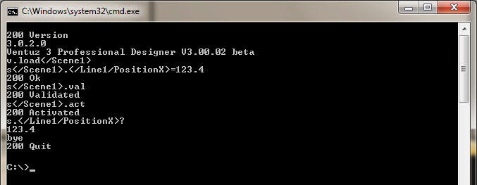 | version v | Returns the version number. | 200 Version 4.0.0.0 Ventuz 4 | 3 | |