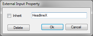 By default, members are externalized with their default member name (here PositionX and PositionY). This name can be changed by double-clicking on the red button. A simple dialog allows to assign a custom external name. To select the default name check the Inherit box.