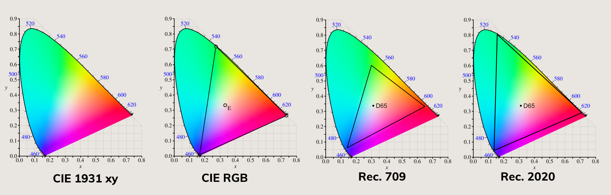 Wider color spaces such as Rec.2020 are able to handle a broader range of chromaticity compared to standard Rec.709. The color space most commonly used for the last several decades.