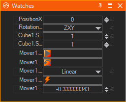 The Watches Editor will display all watched properties of nodes in a single window. Also you are able to easily edit these values there.
