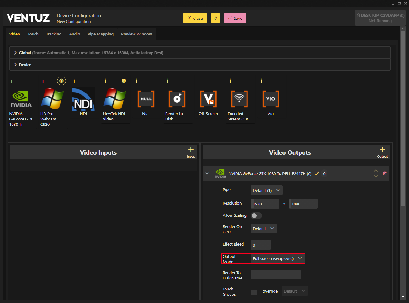 This also means, configuration of the synchronization boards is done in the graphics card driver, while Swap Sync needs to be enabled in the Video Device Output Mode.