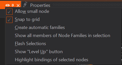 The Ventuz Designer allows some user-dependent configurations that are described above. Look for the eye symbol inside the certain editors to find the options menu.
