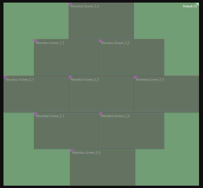 click on Add Screen(s), choose a name for the setup, in this case Rhombus Screen is used. Leave the resolution and advanced settings as default. In the Grid section of this pop-up, change the value from 1 x 1 to 3 x 3; This will create 9 screens in a grid.