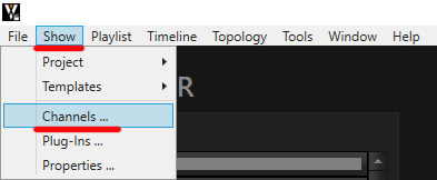 With channel rules you can assure that only the templates can be cued in the the correct channel. To set these rules open your show with the Topology we just build and click on Show and then on Channels.