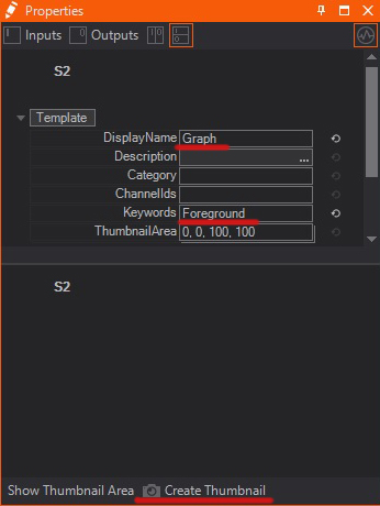 • Thumbnail Area: Determines the are which will be captured when pressing on the Create Thumbnail Button. Can be unfolded by  clicking on the property to manipulate the area in which the Thumbnail will be taken from. The area can be made visible by  clicking on the Show Thumbnail Area which makes it visible inside the Renderer Window.