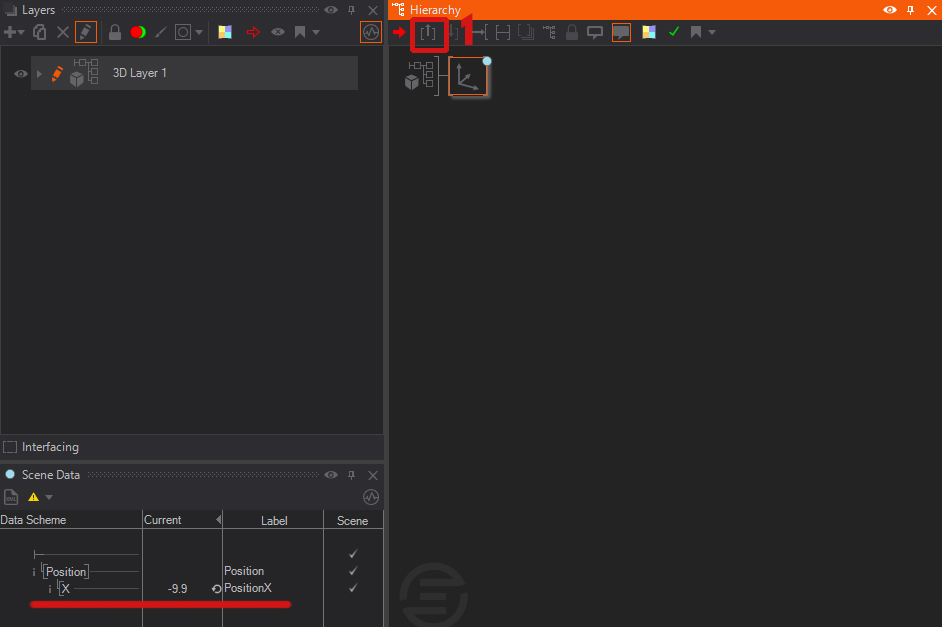 When working with a static template such as a plain background image, there is no animation and therefore no state where to edit the properties. To reach the Template Data, as they are described in the section above, you need to add a minimum of one property of the node that is inside the Template scene and add it to the Scene data. After that you can access the Template Data by going above the Layer level and clicking on a empty spot inside the Content Editor. Now you should see the Template Data inside the Property Editor.