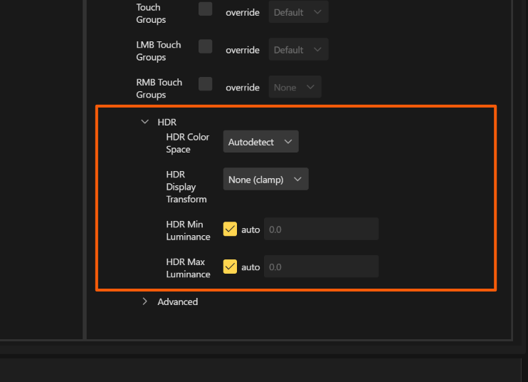 If these settings are not visible for your device, it's possible that your display is not capable of handling an HDR signal or that Windows doesn't recognize it as HDR capable. In both cases, Ventuz can't play out in HDR.