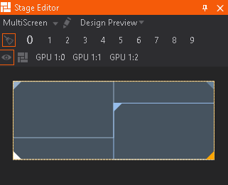 By default, the bottom left panel will contain the Stage Editor window. This tab displays the setup of the outputs, no matter the configuration.
