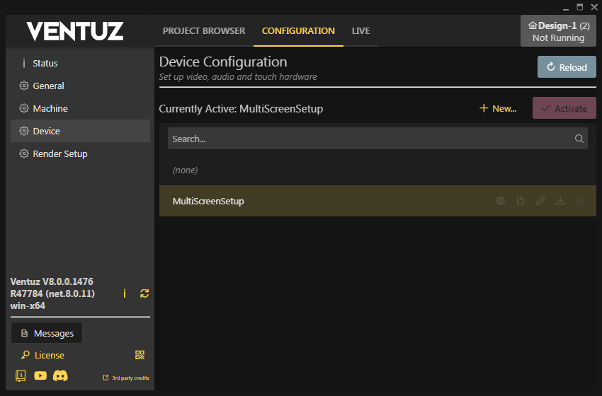 Launch Ventuz Designer and load the project for which the MultiScreen setup was configured.