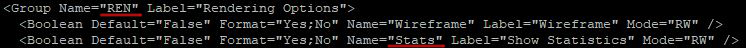 Since we are still in the REN group, and we want to get into the STATS group where we still need to get one level deeper, which is done by adding the .StatsAVInOut. So the command would be: OPT .REN.STATS.StatsAVInOut true.