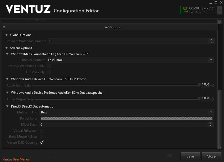 While most options of your stream must be set before starting the Ventuz Runtime, there are some options that can be changed on the fly to make their tweaking a lot easier.