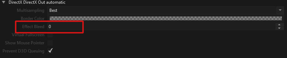 The Effect Bleed option in the makes it easier to adjust Post Processing Effects like the Blur in a Machine Cluster for video walls. Effect Bleed adds an extra margin around the rendered content. The value is the amount of pixels added to all four sides. It will not extend the visible/physical output, but will allow layer effects to create better results close to the machine borders in a Cluster Setup.