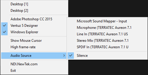 click  on the NDI Scan Converter icon and select your Audio and/or Video source as well as to use the High frame-rate.