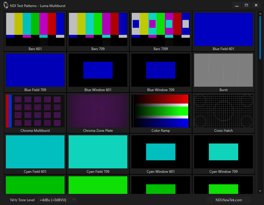 The tool tests your stream and network. It is useful to test and adjust the quality settings for your Scan Converter. You can chose from a wide variety of Testpatterns.