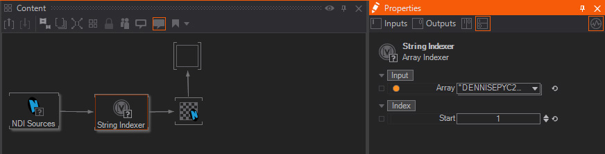 The output of the String Indexer would be bound to the NDI Receiver Source selection.