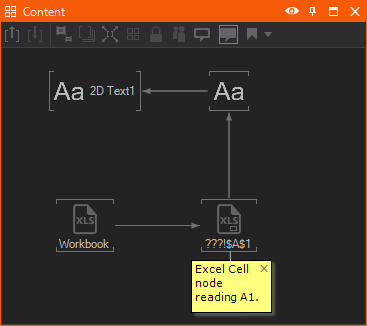 Finally you can use any of the outputs of the Excel Cell node and bind them to any node that needs them.