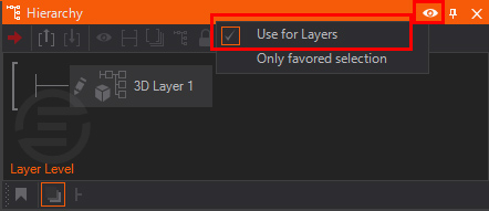 Another useful feature is to use the Hierarchy Editor for Layers. You can enable this feature by click  on the Eye icon at the top right of the hierarchy editor window and select the Use for Layers.